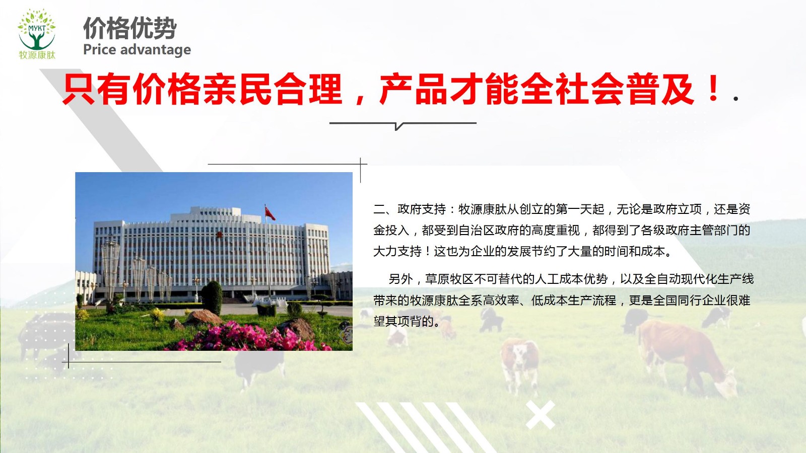 摘要:只有價格親民合理,產品才能全社會普及!高科技、高品質、低價位!“同質價優(yōu)”,“同價質優(yōu)”是所有人的愿望,但可不是一般企業(yè)能做到的。牧源康肽把工廠就建在了全中國優(yōu)質新鮮牛骨的盛產地——呼倫貝爾大草原,首先,就不僅僅占據(jù)了原料品質優(yōu)勢,同時也占..